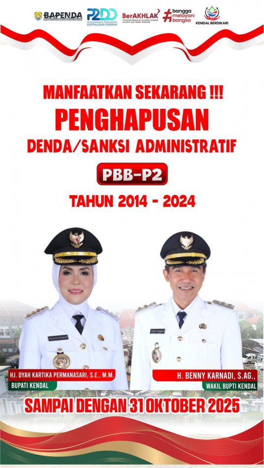 Karangtengah - Pemerintah Kabupaten Kendal melalui Badan Pendapatan Daerah (Bapenda) Kendal mengumumkan program penghapusan denda atau sanksi administratif Pajak Bumi dan Bangunan Perdesaan dan Perkotaan (PBB-P2) untuk masa pajak tahun 2014 hingga 2024. Program ini berlaku hingga 31 Oktober 2025.