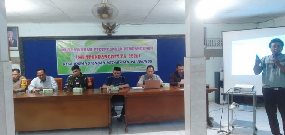 Karangtengah -  Kamis, 24 September 2025 bertempat di Aula Balaidesa Karangtengah dilaksanakan Musyawarah Perencanaan Pembangunan (MUSRENBANGDES) Desa Karangtengah untuk tahun 2026 yang dihadiri oleh Perangkat Desa, BPD, Ketua LKD (RT/RW, PKK, Karangtaruna, Posyandu), Bidan Desa, RDS, Babinsa/Babinkamtibmas, pendamping Desa.
