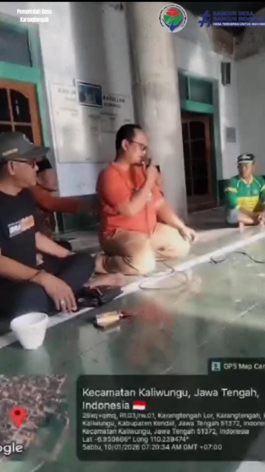 KARANGTENGAH (10 JANUARI 2026) - Menindaklanjuti surat dari Gubernur Jawa Tengah tanggal 6 Januari 2026 perihal Peringatan Hari Desa Nasional (Hardesnas) Tahun 2026. Desa Karangtengah Melaksanakan Gerakan Bakti Desa berupa bersih-bersih di Masjid Jami' Rahmatullah Desa Karangtengah. Kegiatan dilaksanakan pukul 07.00 WIB dengan dihadiri oleh Bapak Kepala Desa Karangtengah, Pendamping Desa, Perangkat Desa, BPD, dan Warga Desa Karangtengah.